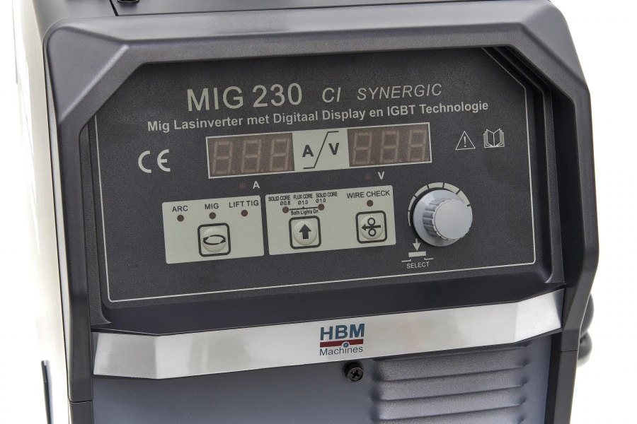 Over de HBM 230 CI synergic Mig lasinverter met digitaal display en IGBT technologie