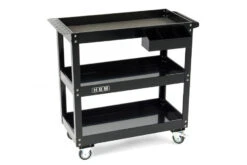 Met deze gereeshcapswagen heb je het nodige gereedschap altijd bij de hand, in de werkplaats of je garage. De wagen bestaat uit een stevig metalen frame met wielen zodat je het geheel gemakkelijk vervoert.
