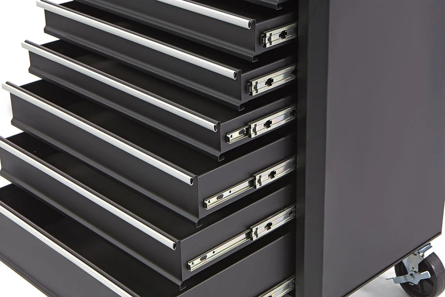 De zeven ruime laden zorgen voor voldoende ruimte om al je gereedschap netjes op te bergen. In elke lade is een anti-slipmat geplaatst om je gereedschap op zijn plek te houden. Bovenop de gereedschapswagen ligt een anti-slip topmat, zodat alles op zijn plaats blijft, zelfs wanneer je de wagen verplaatst. De opstaande rand rondom voorkomt dat gereedschap of kleine onderdelen per ongeluk naar beneden rollen. Als extra handigheidje heeft deze gereedschapswagen een afneembare tray, waardoor je kleine gereedschappen of onderdelen gemakkelijk bij de hand kunt houden terwijl je aan het werk bent.