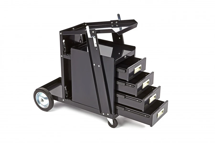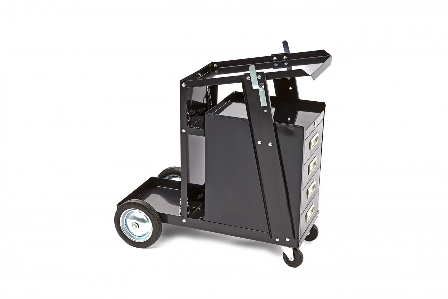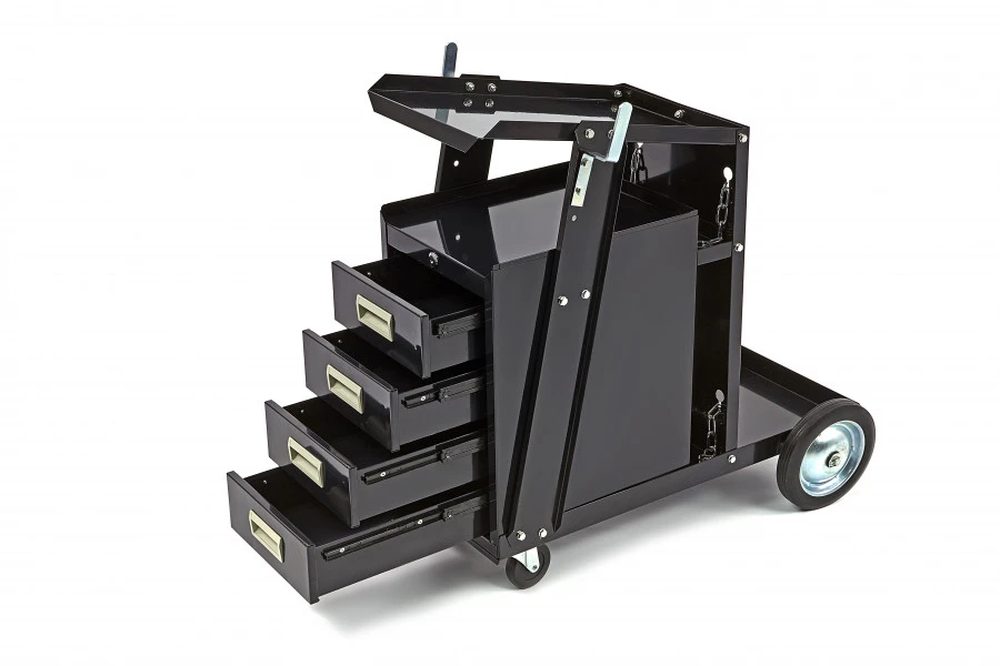 Laswerken op professionele wijze uitvoeren gaat een stuk gemakkelijker dankzij deze laswagen met verschillende laden. Niet alleen kan je er al je lasgereedschap snel in kwijt. Ook biedt de wagen alle nodige ruimte om kleine laswerken tot een goed einde te brengen. De grijpers aan de zijkanten van de wagen maken het mogelijk slangen, helmen en toortsen te bevestigen.